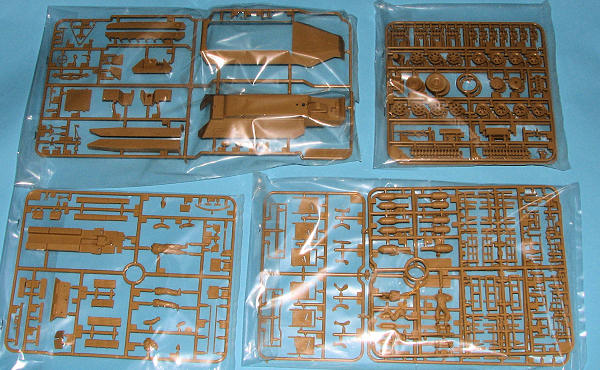 This is a curbside without a full engine, though you do get a rather complete interior. in fact, the first thirteen of the twenty-one construction steps basically have you building the standard SdKfz 251/1 vehicle while the rest of the bits are for the rockets and their canisters and framework. One gets both 28cm and 32cm rockets to install in the canisters. While these