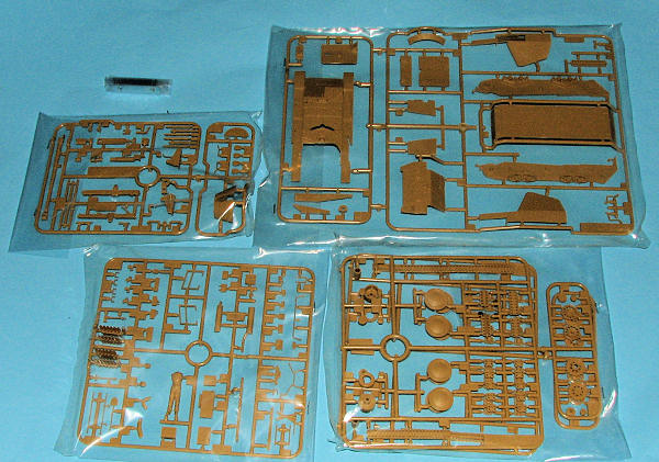 The tan plastic is as superbly molded as we have come to expect from Tamiya. The tracks are link and run type with slight sag already molded into the upper run. I was impressed by the detail provided for the gun area. The shell racks are all drilled out and while not as thin as photo etch, are still quite well done. A most complete PaK 40/3 anti-tank gun is provided and is very nicely detailed. Tamiya also provides a figure to pose with the completed model.