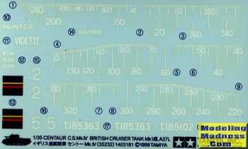 Instructions are well done with the usual Tamiya paint numbers. Two markings options are provided, differing only in serial and name. Those rather odd degree markings that only the British would put on tanks are included as decals. I recommend hot water with these as they will have to conform to some very convoluted surfaces.