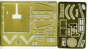 The gun comes with a metal barrel and the piston assembly for elevating the gun has brass tubes. A well done gun shield is provided for the gun to give some protection for the crew. An armored cab is also provided for the driver. Photo etch is provided for many of the external details and is also the material from which the gun shield is made, providing a realistic thickness. I was pleased to note that only a few of the p.e. parts are actually small so those who dislike tiny brass bits will be happy about that.