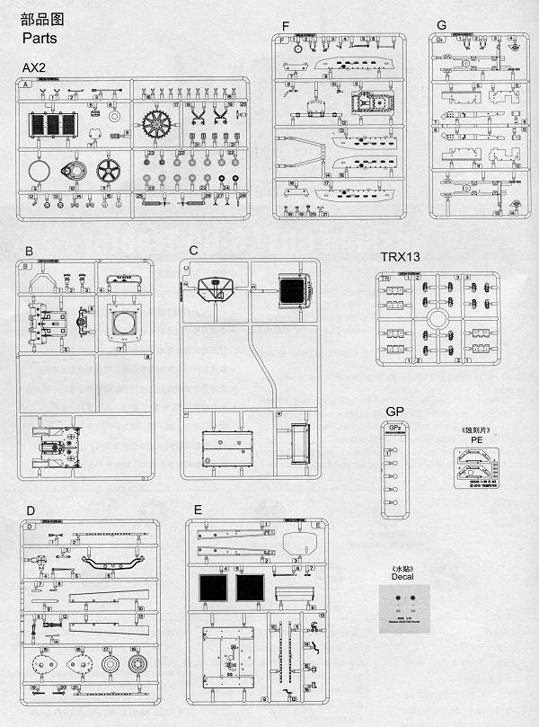 In terms of markings options, there are not any. You get a nice decal sheet for instruments and that pretty well covers it. These can be painted either green or grey. Though hardly needed, a full color five view is provided for each color option. Instructions are well drawn and properly detailed.