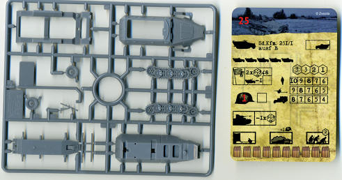 This is another of Zvezda's war gaming kits and this time it is a 1/100, which is the standard scale for their vehicles. Like others in this series, it is light on parts. Considering their usage, the detailing actually isn't that bad though light on the finer parts. As with others in this series, there is a movement card. As you can see, the kit also includes a flag for either movement or identification.