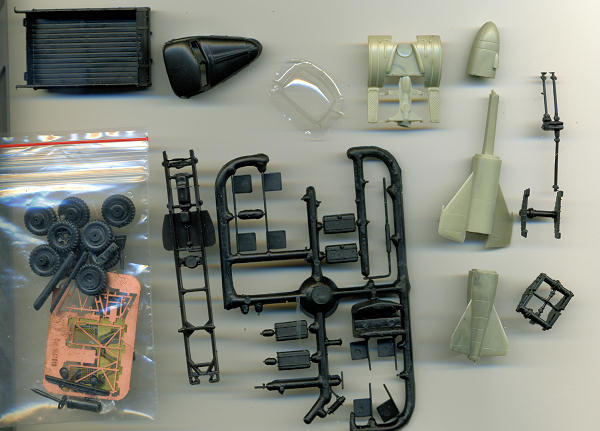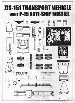 The photo etch parts are pretty much reserved for truck grilles and light guards and the missile's transport cradle. The vac bits are for the windows. This is a nice touch as several 1/72 truck kits include no clear bits at all. There is a complete chassis and well done suspension pieces. The bed will need to have some of the slats trimmed down, leaving only a few along the bottom. The Styx missile has a three part body (based on the Yak-1000 design of 1951) with boosters.