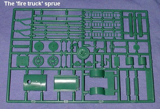 If you recall from a previous preview of PST kits (please visit that preview for a look at the other sprues), I mentioned that the differences between the Studebaker and GMC trucks were offered on the same sprue, save that the cabs included were different. Well apparently the GMC chassis wasn't used as a fire truck, so you'll have some spare bits left over. All that I said about the kit in that preview is good for this one as well so I'll concentrate on the new sprue (shown above).