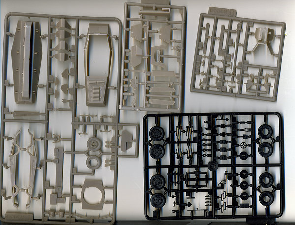 I should point out that there are really two black suspension sprues, but I only show one. If Roden needs to do anything to improve their kits, it would be to dispel with the two-piece wheels and mold them as a single unit. Of course, they may have trouble with sink areas in thick plastic or with mold mismatch and that is why they are molded as such, but if they could do separate full wheels and separate hubs, it would be super.