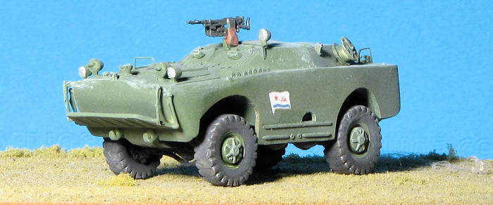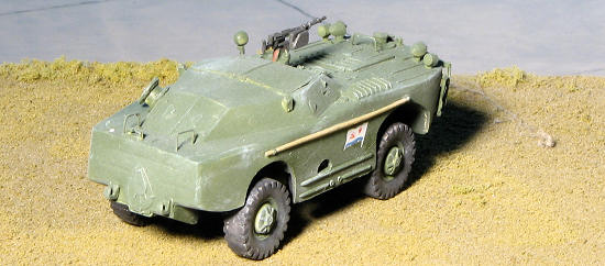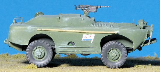The instructions are quite good, breaking construction down into three major and two sub assemblies. The small decal sheet is well printed and thin, offering markings for seven different vehicles from the Soviet Union, Poland, East Germany, and Egypt. All except the Egyptian BDRM-1 are in khaki-green with the latter being in a sand color. A plus are several color photos of the actual vehicle on the side of the box. They should come in very handy during construction.