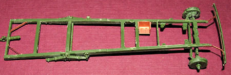 are a number of sprue gates that need to be cleaned up. There are two rear cross-members to add. One fits in between the rails and while the drawing shows a clear support area with notches in it, the kit part is smooth and square. This sort of sucks as that area with the notches is to locate the rear springs. Means that the mounting tabs on the rear leaf springs will have to be cut off and the springs fit as best as one can. At the very rear, the main assembly drawing for a cross brace shows it being butt fit to the very end of the chassis rail. This is incorrect, It should be installed inside the frame rails up against some tabs. Again, these tabs are non-existent so on just has to give it a good guess.