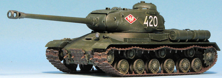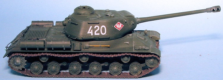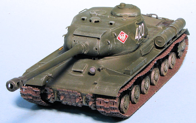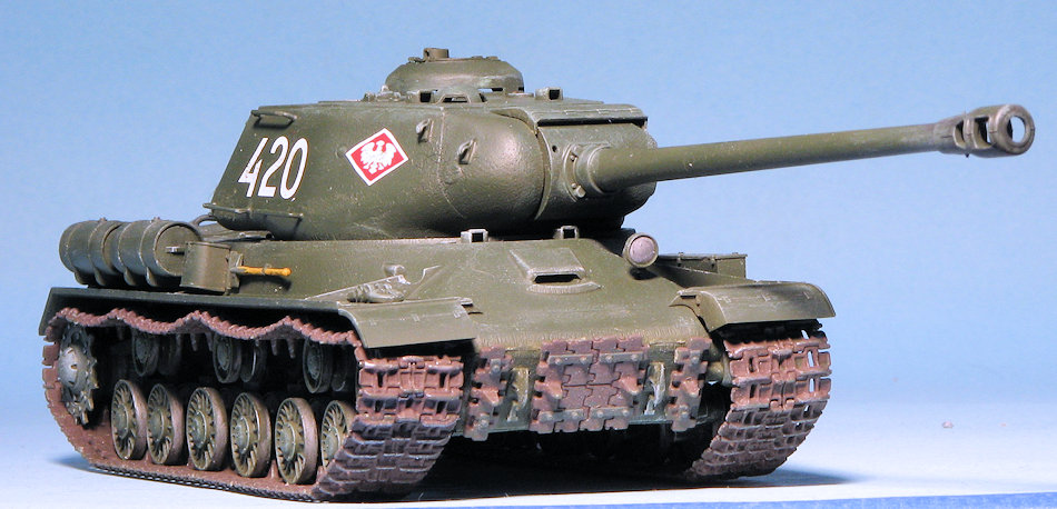 erstand why they were not. I ended up using some super glue to hold the cables to the back of the tank. These were then brush painted with the Vallejo before I did a bit more dry brushing. Just about the last step was to add the decals. Though the kit offers markings for the Polish 4th Heavy Tank Regiment, I wanted something a tad bit different so used markings from a sheet by Toro decals of Poland. This had markings for this unit, but with a slightly different number and a bit differently painted unit badge. I decided to put these directly on the turret without using a gloss coat. Not the best move as it took multiple applications of setting solution to get rid of the silvering.