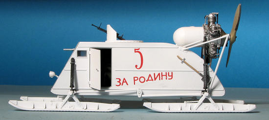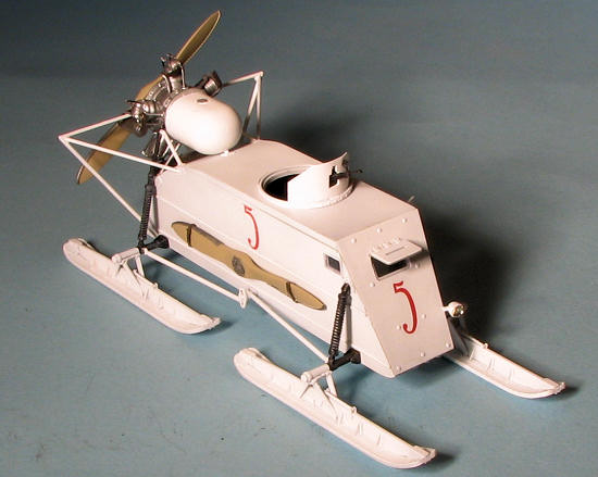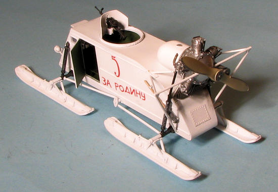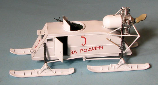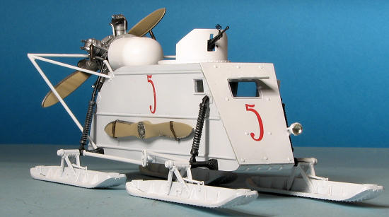 Combat Aerosans often worked with ski infantry battalions, and could carry four ski troops riding outside the vehicle on its skis or towed behind.
