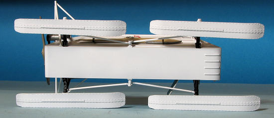 The engine was painted aluminum with some detail painting done in black and Vallejo's 'Tinny Tin'. A dark grey wash helped to accentuate the cylinders a lot more. I also painted all the various struts and rods that are part of the kit. I find cleaning these things up to be tedious, but it is part of the build process. The props were painted a wood shade with steel hub and blade leading edges.