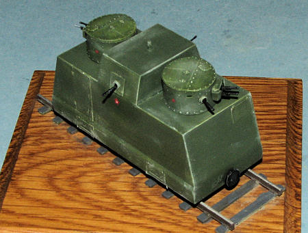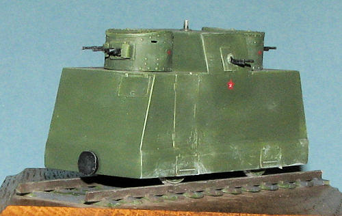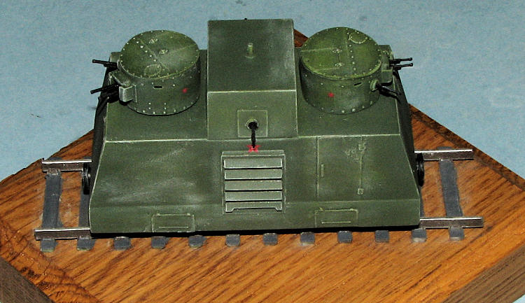 As usual with things like this, I was unable to find a whole lot about this particular vehicle outside what little is provided by the kit instructions. Basically, this was built in 1941 by the Kirov plant and was part of the armored train 'National Avenger'. Built of 8-12 mm armored sheet steel, there were armored doors and ventilation sections, but it must have been a miserable existence to be inside one of these when it operated. Using BT-2 turrets, each with two DA-2 machine guns and a single DT gun, and two more on the side of the hull, their ability to inflict damage on attacking infantry was considerable. Crewed by 7 or 8 men, these sorts of weapons were effective, especially in the long expanses of the Soviet Union. This particular self propelled car operated until the end of the war