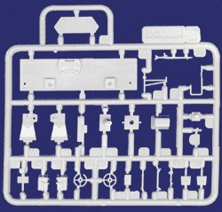This is simply another variant of the basic SdKfz 231 version previewed earlier. The only real difference is the area of the 'turret'. In this case there are the parts for the short barreled 75mm cannon and its various armor plating and mount. There are also parts for the additional 7.62mm machine gun and its mount. As you can see from the image, one needs to be careful when removing some of the smaller parts from the sprue to prevent breaking them. There is also a new upper body section with the properly enlarged opening for the cannon.