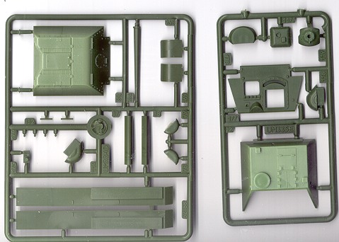 The hull is from kit 325 one of their T-34s. From kit 334 and kit 335 come the various bits for the upper hull superstructure. Those are shown at the upper right. There is also the same small etched fret that isn't shown in this preview.