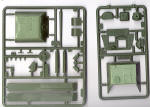 Instructions are equally as good with clear construction drawings and color information provided as either Humbrol or generic names. Markings are provided for three vehicles. These are all in overall Soviet Armor Green (Humbrol 86). A small decal sheet is provided. As you can see, it is difficult to bring out the white lettering against the very light blue background.