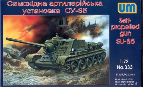 In today's kit market, it is quite normal for there to be as many different variants of a kit produced as is possible. UM has continued to do this with their T-34 series of tanks and the various SU-xx tank destroyers/SPGs. In fact, the only thing new in this kit from previous ones reviewed is the decal sheet, instructions and box. Everything I've said about previous kits is true with this one. Well molded. No flash. Some sink areas and ejector pin markings.