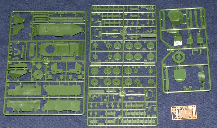 Instructions are the usual super UM product with well drawn construction sequences that provide color and any modification information. Colors are referenced in Humbrol and generic colors. Markings are provided for three vehicles. Two in overall dark green and a third in a nice segmented color scheme of light grey, tan and olive drab. This last scheme is shown in color on the back of the kit box. Thanks to its hard edges, this can be brush painted by those so inclined. Decals are fairly well printed with large carriers around each marking. They are also matte and appear to be nice and thin. You get pre and post 1945 markings with this one.