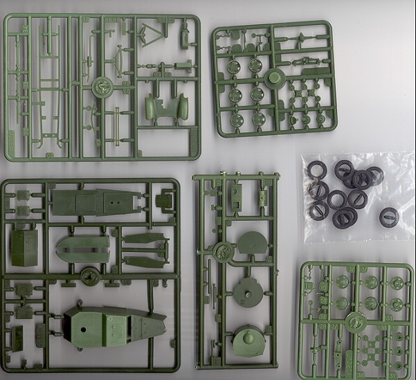 very nicely molded in green plastic and has vinyl tires that simply slip