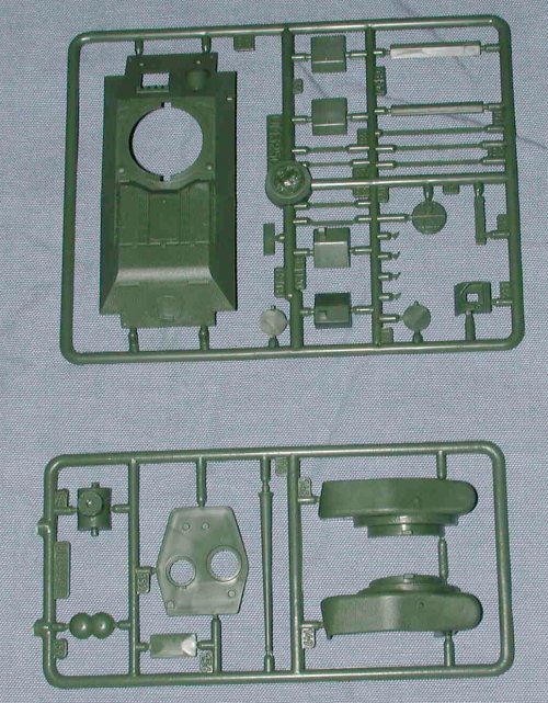 Since UM is doing a series of vehicles based on the T-34 chassis, it is understandable that there would be some common sprues. Those are shown in the left thumbnail while those peculiar to this version are on the right.