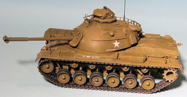With the tracks in place, areas to accept decals were then clear coated. Considering the issues I had getting these areas to look matte after the markings were on, and the lack of issues I had with silvering on those few not applied to a gloss surface, I think I'll bypass the glossing portion next time. I chose a tank with the white stars that was probably used in the States as it has 'test operations' marks. I was less than thrilled that the U and S of the side US ARMY decals were separate. Why these could not have been part of the 'ARMY' decal are beyond me. The decals were very good and I had no issues with silvering or tearing.