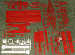 Showing all the sprues that come with the kit would be an exercise in futility with all the loose parts, so I've just shown a few representative ones in the image. The actual number of red parts would triple if I showed them all. For being nearly 50 years old, the molds have held up exceptionally well. The parts are virtually flash free, something one doesn't always find in new Hasegawa/Tamiya kits. I found a bit of mold release material on some of the bits, which means you'll be well advised to wash the parts. Ejector pin marks are in some easily seen places so the fastidious will have a bit of work to do in this regard. I also found some sink areas, but few of them that will be visible when the kit is finished. I'd have to say that overall, the molding is excellent, especially considering when it was engineered and how old it is.
