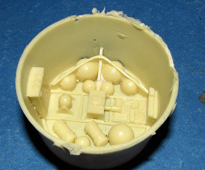 Typical of Anigrand and other resin kits, there are the inevitable air bubbles, air cavities and resin 'balls' in some corners that will need to be cleaned up. My equipment section has one portion of the exterior rim that was either short shot or snapped off when the resin pour stub was removed. This will have to be repaired, probably using plastic card or epoxy filler if modeled in the 'in flight' mode.