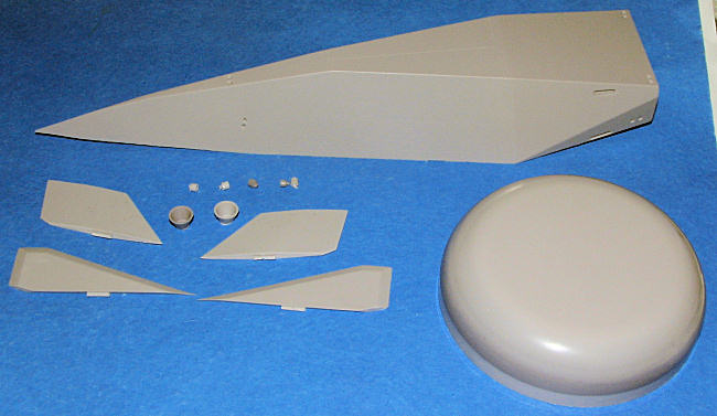 The kit comes superbly packaged in a sturdy box. The nose of the kit is protected with foam and the smaller parts are in a separate bag. None of the usual laborious clean-up is needed for this kit as all the stubs have been removed down to just a small area that will take but a few minutes to remove. The edges will also benefit from a quick swipe of a sanding stick. The resin is superbly molded with thin engraved panel lines on the fuselage. I did fine one tiny air pocket on the underside of a fin that will need to be filled and I also noted that one of the main rocket nozzle holes was filled more than the other so this will need a bit of grinding to get the nozzle to fit flush. These are trivial items that even the bare beginner will have little difficulty handling.