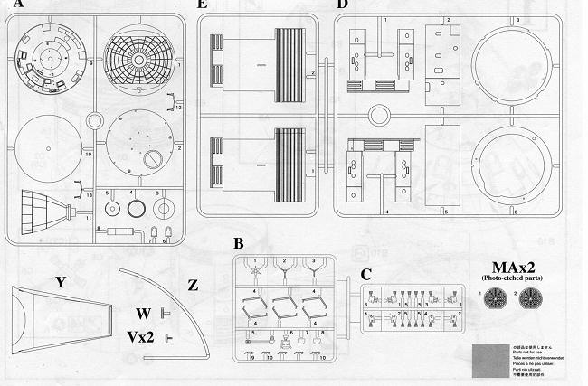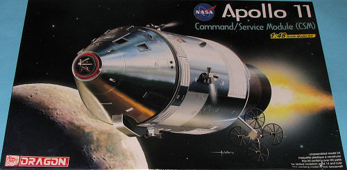 Nice to see another real space kit from Dragon and this time it is the Apollo 11 Command and Service Module, in 1/48 scale. This is a pretty simple kit in that there is not a ton of parts. No LEM or the housing for it and with no interior provided, it is pretty much just the outside of the CSM. The kit does include the four-dish antenna system with the dishes done in formed etched brass, so the