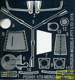 First thing you notice is that you get two full kits in the box. You also get two sets of photo etch and enough decals to do any of the Mercury spacecraft, including the 'boilerplate' versions that were used in tests.