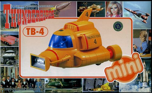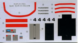 Thunderbird 4, the subject of this kit, is a small utility submarine for underwater rescue, Thunderbird 4 is carried aboard Thunderbird 2, nearly always in Pod 4, although it was once transported in Pod 6 ("Attack of the Alligators"). In the episode "Terror in New York City", Gordon launches the craft by emergency procedure, from Thunderbird 2's hangar and sliding along the island runway, with the runway's overhang automatically dropping into the sea as Thunderbird 4 approaches it. However, the submarine's slow speed renders it impractical for Thunderbird 4 to travel on its own; when Thunderbird 2 was temporarily out of action and Thunderbird 4 required, Jeff Tracy contacted the navy vessel Sentinel - the fastest ship in the fleet and unintentionally responsible for incapacitating Thunderbird 2 in the first place - to give Thunderbird 4 a lift to the danger zone. Thunderbird 4 is 9 m long and 3 m wide, this makes it the smallest of the Thunderbirds vehicles, but not the smallest of the pod vehicles. It is fitted with an adjustable searchlight which can be raised or lowered to reveal a variety of rescue instruments, such as cutting lasers, electromagnets, demolition rockets and battering rams, which can be extended from the nose section. Thunderbird 4 is piloted by aquanaut Gordon Tracy.