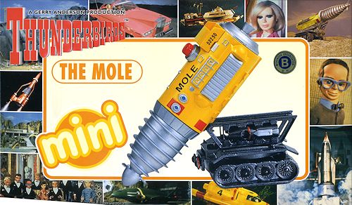 The Mole is a high-speed, manned 30 ton tunnelling machine capable of boring through even the hardest rock to rescue individuals trapped underground. A serial number of "56156" can be seen on the top rear port side of the Mole. Due to an inbuilt thermal-imaging system in its drill bit, the Mole can be operated with acute precision to ensure that buried individuals are not endangered from rockfalls caused by drill movement despite the fact that the drill screw rotates in the wrong direction. The Mole is carried to rescue sites on its trolley, then tilts to commence drilling. Caterpillar tracks on both sides enable it to return to the surface. The vehicle is often carried in Pod 5, and is notable for being one of the few pod vehicles to appear in multiple episodes; it also appears in the closing credit sequence with the five main Thunderbirds machines and FAB1. It appears in "Pit of Peril", "City of Fire" and "The Duchess Assignment", and is glimpsed in the pod vehicle bay in "Cry Wolf". It is generally regarded as one of the most popular machines of them all and barring Thunderbird 4, has had more replicas made than any other pod vehicle.