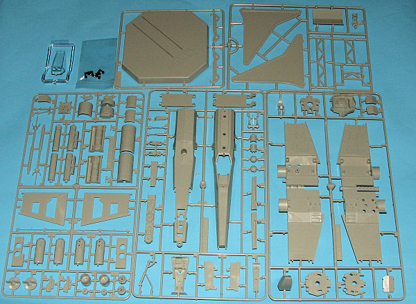 The kit contains four major sprues for the X-wing itself (the lower left sprue is duplicated and not shown), two for the stand and one for the very clear canopy. The molding is superb with nary a hint of nasty molding glitches aside from a bit of flash on the feet of the pilot, and a tiny depression on one of the thicker pieces. As this is a snap kit (!), there are poly caps and screws to help with assembly.