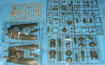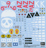 Actually, it would have to be pretty sturdy as the model itself will be over 9 inches in length when done. The instructions are nicely drawn with the usual Gunze paint references. A superb decal sheet come with the kit and provides seven different markings options. The painting and decal directions are on two hard cardboard cards with holes punched on one end (to put into a binder, I guess). The markings and camouflage schemes are all quite imaginative.