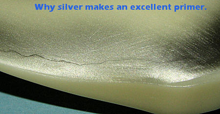 Construction on this one is very simple and much of the time will be spent filling gaps. I first glued the upper and lower fuselage sections together, filling the seams around the lower edge with super glue. In fact, I did that a couple of times, spraying metallic silver on the seam area each time to highlight what I'd missed in the previous sanding. I find that this method is a sure-fire way to be sure nothing is missed. It took several applications over several days to get this completely done, and while I could have probably done a bit more, three times is about all I'll do when it comes to filler and sanding.