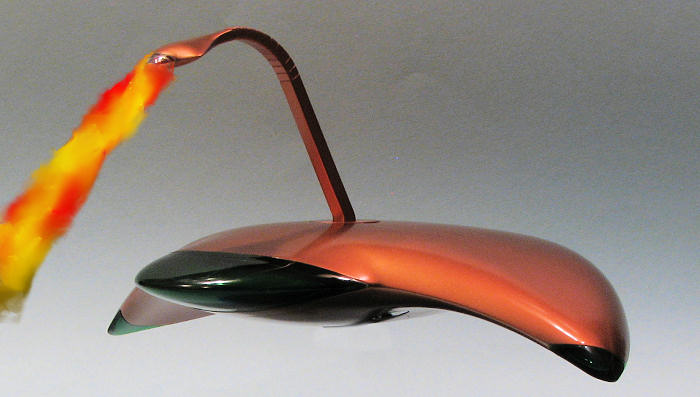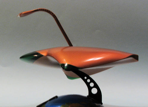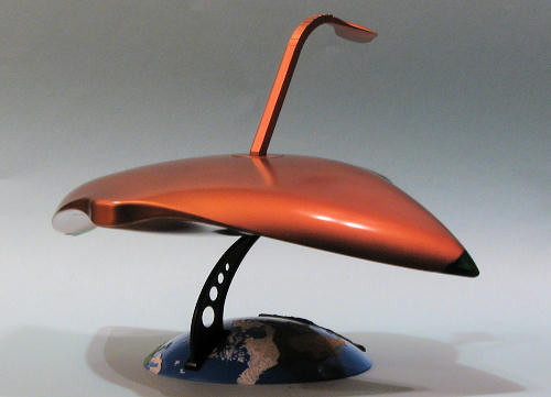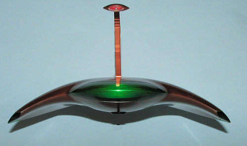 The last thing to do was to screw in the ray base, stick the ray gun section into it (glue it if you wish) and plunk it on the stand. While the stand is a tight fit into the base, the bit that fits into the craft is looser so you 'may' want to glue it in place. Of course, this will seriously inhibit its play value. Mine was able to chase down alien giant felines with great success; the ray gun doing it job to rid the planet of these pests.