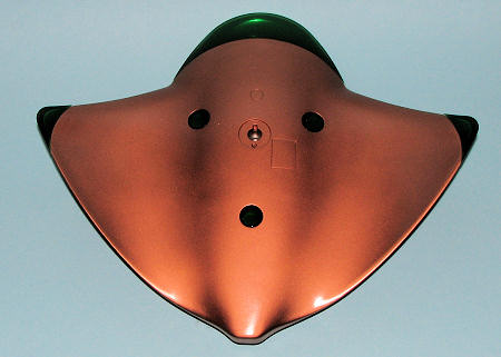 No markings so I'll carry on to the painting part. To me, this looks like it should be copper in color. I chose a color from Vallejo that looked pretty good. Hoping that it would stick well to bare plastic, I sprayed it on using my Aztek A 480 airbrush. The wide pattern nozzle was a real help and the color went on well, though it was a bit on the matte side. It dries to the touch in just minutes though I let it set a few hours before picking it up and polishing the surface with a soft cloth. I'd recommend an undercoat for this paint as quite a bit came off on the cloth. It did show a few areas I missed so the parts returned to the workbench for a bit more filler.