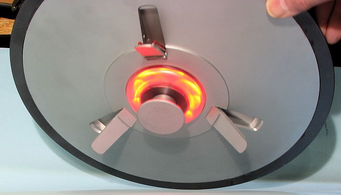 I had difficulty getting the two saucer halves to fit well. There were large bulges in the join despite getting it properly keyed on joining. There is a small keyway that allows everything to line up properly. I ended up using super glue to hold the lips in place and it isn't pretty so do this first. I tested the electronics and it all works just fine. You are provided two lower plates. One for in flight and one for landing. There is a one piece dome that fits over the switch assembly. It is a very tight fight and, like the stairs, requires a fine Xacto blade to get into the gap to pry these items off or open. Not exactly what you'd want with something that has to be removed to activate the lights as one inevitably gouges the plastic and scratches the paint in the process. I think that PL dropped the ball on engineering this. As there are no decals, that pretty much ends the build.
