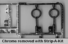 This includedRobby's feet, arms and torso. The fit is quite good, but there is need forfiller on almost all the joints, especially where the parts are cut away fromthe sprues. I also determined that it would be nearly impossible to clean up thechrome parts and keep the chrome plating so I started removing the chrome. I useStrip-A-Kitfor this as it works like magic in just a few minutes. Using a cotton bud (orQ-tip), Strip-A-Kit was coated on all the parts that were to be stripped. Afterletting it sit for just a few minutes, the chrome dissolved and it was thenwashed off with regular tap water. Total time: about 5 minutes and no need touse toxic materials like oven cleaner to remove the chrome.