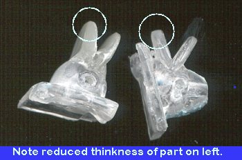 There are two things that canbe done. One is to fill the seam with superglue, sand it down, mask it off, andpaint the rest of the part along with the rest of the robot. The other is toremove the clear disc sections and then replace them with something else. A realquandary and one that will definitely make a difference in the finished kit. Notbeing able to come up with clear sections of that size, I took the first option,one that does require quite a bit of work.