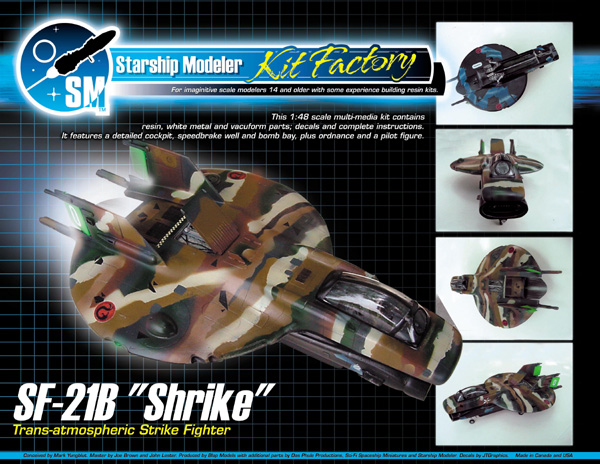 This is Starship Modeler's first multimedia kit and they are off to a pretty good start. This kit is the "FS-21 'Shrike', a trans-atmospheric strike fighter". It is designed to fly in space and also in the planet's atmosphere. In many ways, it is what one would probably see in the later part of the 21st century if not earlier.