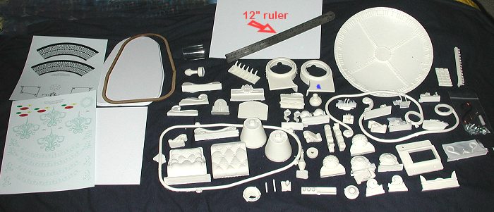 Other bits and pieces in the kit are some metal screws and some wire used in construction and there are several sheets of plastic to be used as well. The base comes pre-shaped so that is one area that you won't have to concern yourself regarding trying to form. As you can see by the ruler in the upper top of the image, this is going to make into a very large model when it is done.