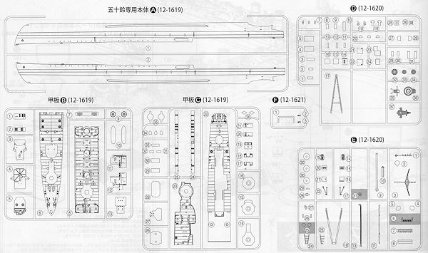 Instructions are in landscape format and provide not only a history of the ship but photos as well. Construction steps are very well drawn and provide detail sketches where needed. There is a decal sheet that is not shown that provides for flags and a few hull markings. As you can tell from the sprue diagrams, there are quite a few pieces not used on this ship and I fully expect to see other Nagara class light cruisers produced by Aoshima.