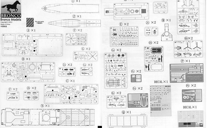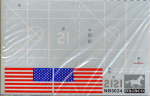 Instructions are quite well done and presented in Bronco's usual glossy paper full color book format. A variety of paint references are provided. There are a pair of decal sheets included. One is specifically for the ship while the other provides markings for all of the additional aircraft and vehicles. They are well printed and should work just great. The big US flags are supposed to be attached to your favorite backing material and strung between the forward tower and a smaller support.
