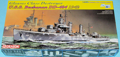 Heavily anticipated and equally heavily promoted by flyers in all new Dragon kits, the Dragon USS Buchanan is a kit that has caused a lot of interest, especially amongst ship builders. To this occasional ship constructor, these 1/350 destroyer kits are an excellent balance between size and detail. As much as we'd love to do a battleship in this scale, the truth is that lack of display space often thwarts us. Not the case with this one as it measures just a few inches over a foot in length, about the same as a 1/48 jet fighter.