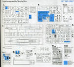 Instructions are well done and provide detail sections where the parts count gets high. There is a sheet of paper flags and a very nicely done decal sheet that includes white ship numbers and all the non-skid one would want for the weather decks. Placement of these decals is shown as the construction goes along so this is a kit that needs to be painted in stages.
