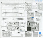Coming after Dragon's superb Scharnhorst, this kit apparently uses some sprues from that larger ship for a number of its guns and deck details. The kit can be built as either a waterline or full hull kit and for the latter a display stand is provided. There are also several photo etch frets for various details like hatches, ladders, gun shields, chains, funnel rails, radar and other pieces. One thing I know many ship modelers would like to see included would be etched rails, but we'll leave it to the aftermarket folks to supply that. The bits are really well detailed to Dragon's usual high standards. Here are the details: