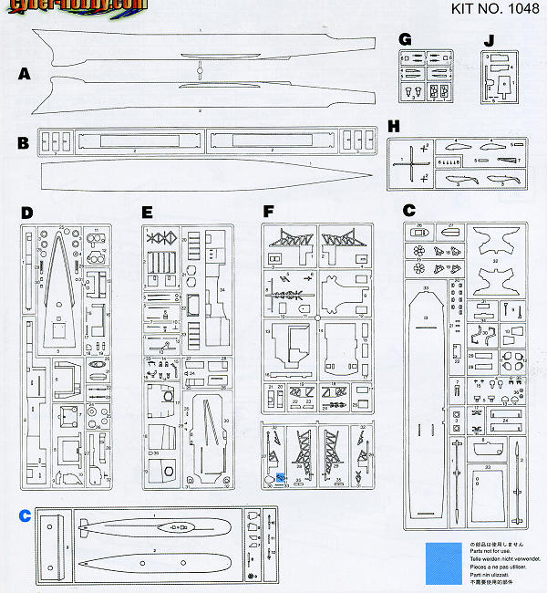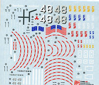 Superstructure items are all nicely done and seem to be a very straight-forward build. This includes the mast structure and the aft helos (which can be built with one having blades folded). The builder will have to open a few holes, but all that is shown in the smaller, color instruction sheet. The Yorktown can be marked with the white ship numbers or the later grey versions and all the various deck markings are included on the decal sheet.