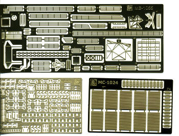 The kit has three very nicely done photo etch frets that include radar antennas, railings, catch nets, seats and sights for the AA guns, and many other small detail parts. No need for aftermarket for this one. You also get six each aircraft for the air wing, including SBDs, TBDs and F6Fs. The Avengers and Hellcats come with three aircraft that have folded wings and three that have them extended. Even the simplest aircraft has 13 parts with the most complex at 20, so this does add to the parts count. The kit includes hangar deck detail as well and you can pose the elevators either raised or lowered. There are three excellently done photo etch frets and a sheet of flags.