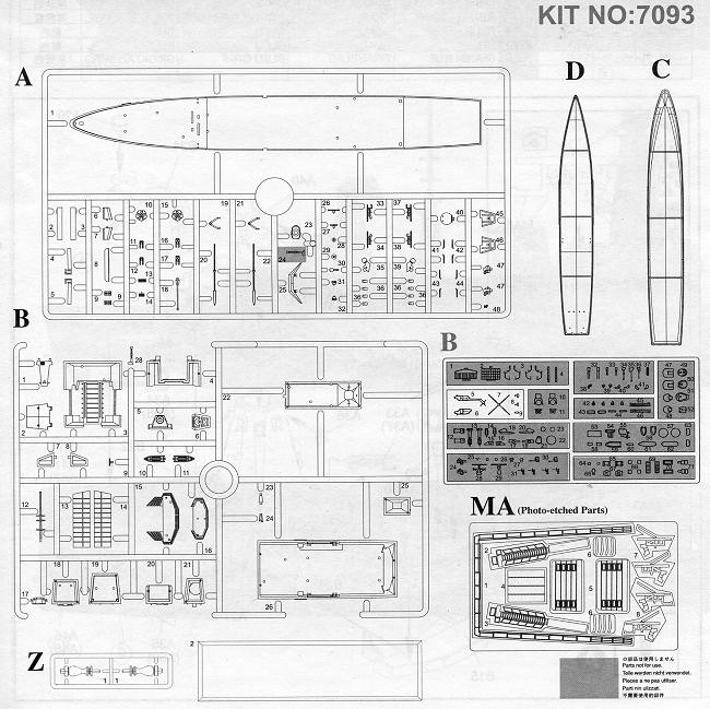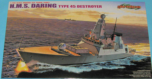 With but 100 parts, this is one of Cyber-hobby's simpler 1/700 ship kits. But then, the Daring isn't exactly festooned with all sorts of exterior bits and pieces. Modern ships seem to be relatively uncluttered compared to those build a few decades back and that is probably to reduce radar cross-section. Anyway, the parts are superbly molded as you'd expect from Cyber-hobby. There are two major sprues, another from which only the helicopter is used and the upper and lower hulls. This allows the kit to be built as a waterline version if one wishes. For a full hull, a display base is provided. | CONCLUSIONS |