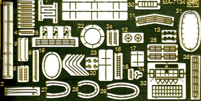 The kit can be built as either a waterline or full hull kit and for the latter a display stand is provided. In fact, you get two complete hulls; one of each, but you cannot build two ships from this kit. There is also a small photo etch fret, and while not as comprehensive as in the 1/350 kit, is still enough to give most of us fits. This version has a few differences from previous boxings in term of the superstructure, as few ships, even sister ships are identical. One thing I know that many ship modelers would like to see included would be etched rails, but we'll leave it to the aftermarket folks to supply that. The bits are really well detailed to Dragon's usual high standards. Here are the details: