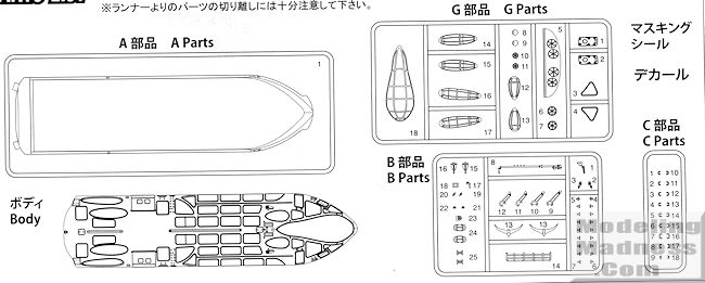 Starting with the ship, there are two major parts, an upper and lower hull. The lower hull will take a ton of small tie-downs as well as a rear section with a railing. The upper hull will take all the rest of the bits, and this includes a number of very tiny hand holds/steps as well as various antennas and the clear pieces.